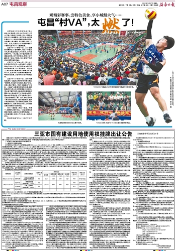 这场“村VA”欢乐十足。此次决赛恰逢周末,屯昌旅文局联动有关部门推出“排球赛+欢乐游”系列活动,推出“文创+非遗+美食”集市。同时,屯昌组织“小屯妹・大昌叔”志愿者有序疏导交通、维持现场秩序,群众在文明观赛参与互动时,凭决赛门票还有机会抽取郑师傅黑猪肉腊肠礼盒、昌味猪肉干以及海信电视机、雅迪电动车等奖品,还可兑换梦幻香山、凡迪农场等景区门票。此外,群众凭决赛门票在维也纳酒店、城市便捷酒店、康英大酒店等旅馆以及多家餐饮店消费,可获赠精美点心,或享有相应折扣,文体旅融合激发消费活力成效明显。