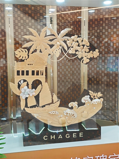 “椰壳系列文创的热度十足,几乎上架即售罄。”霸王茶姬海南公司总经理聂诗飞介绍,结合百店店庆,此次霸王茶姬与吴名驹传承人合作,提取椰雕中的经典元素和典型纹样,经过创新化设计改造,推出茶盏、冰箱贴、摆件灯以及手机链等文创产品,还设计了一米多高的椰雕艺术作品供展出。