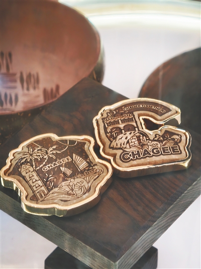 上个月底,椰雕冰箱贴刚上线,李思琪便马上到门店下单,如愿买到了心仪的冰箱贴套组。这套冰箱贴以椰壳结合金属为材质,分别做成茶盏、窗花等形状,上面精美地雕刻着船、海浪、椰树、钟楼、船型屋等充满琼岛风情的元素。