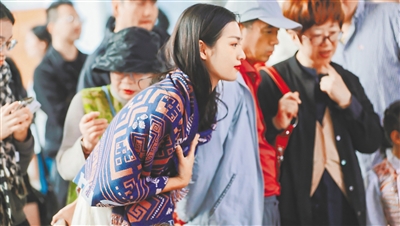 市民身披黎锦纹样的披肩参加活动。 本版图片由海南日报全媒体记者 邓钰 摄