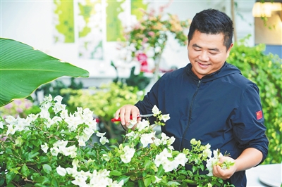 餐厅里的植物,卓齐辉如数家珍,他指着一盆三角梅介绍:“这个叫粉天使,那边的三角梅有七八十种,仙人球有上百个品种,每一盆都不一样。”