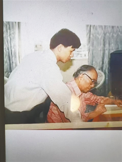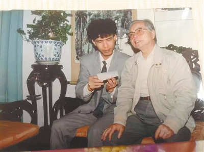 1991年,黄宏地在海口采访岭南派国画大师关山月。