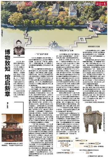 ■ 张意薇2025年,是中国现代博物馆诞生120周年。回望1905年,张謇在江苏南通创办中国人自己的第一座公共博物馆——南通博物苑,奠定了中国博物馆事业的初基。从一个先驱性的民办机构,到如今遍布全国的文化空间,博物馆早已走出深墙高阁,成为人人可至的“文化客厅”。大大小小、主题各异的博物馆,承接着历史文脉,也辉映着时代光芒。