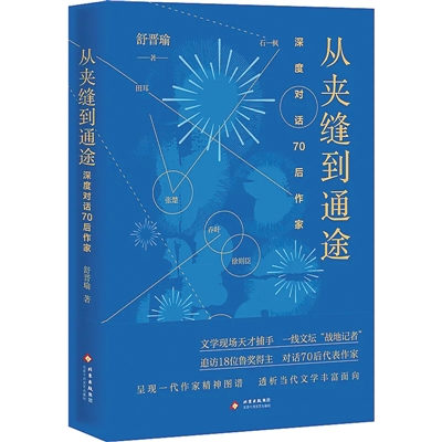 《从夹缝到通途:深度对话70后作家》本书是《中华读书报》记者舒晋瑜追踪采访18位70后鲁迅文学奖获得者的访谈录。受访作家包括徐则臣、乔叶、张楚、滕肖澜、鲁敏等。作者以“鲁奖”为切入点,聚焦作家的核心作品,追问其创作逻辑及艺术探索过程,并结合作家经历,兼顾深度与细节探讨作品主题和人物原型。勾勒出一代作家精神群像,为当代文学的深入研究提供了有力佐证。专访中所涉及的问题,既是当代文学界的热点,大家比较关注的焦点,也将是未来一切文学史研究的最可靠的作家自我表白。