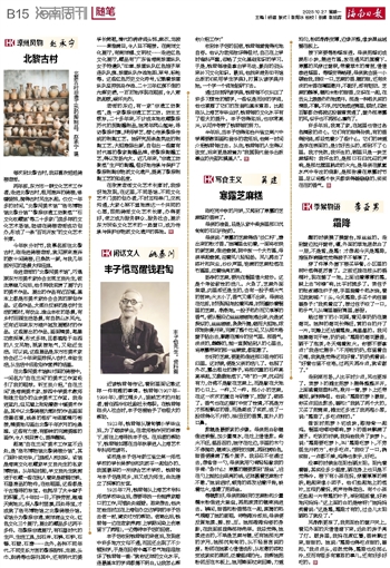 在北黎河美术馆斜对面的骑楼中,一间名为“自在兰间”的美术工作室吸引了我的眼球。听王良介绍,“自在兰间”是海南美术家、琼西中学美术教师张雄兰创办的业余美术工作室。我走进室内,但见墙上张贴着数十幅美术作品,其中以北黎骑楼为题材的作品画面泼墨恣意,线条的粗犷与细腻精巧衔接,精美地勾画出北黎千年岁月的沧桑感。这些有力度、有韵味的充满美感的画作,令人悦目赏心,提神醒脑。