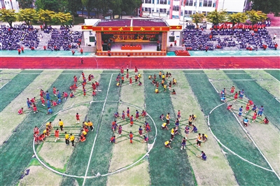 海南省农垦实验中学附属五指山思源实验学校学生在跳竹竿舞。通讯员 张江英 摄