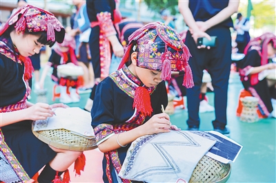 近年来,五指山市大力整合非遗资源,陆续开发黎锦、苗绣、黎族竹木器乐、苗族盘皇舞、苗族五色饭制作等一系列特色校本课程,在丰富学校课程内容、提高教育教学质量的同时,培养了一大批热爱非遗、初步掌握非遗技艺的学生,不断提升他们对民族文化的认同感和自信心。