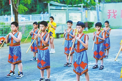 五指山市第二小学学生演奏黎族竹木乐器。五指山市文化馆供图