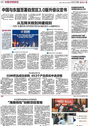 据了解,中国-东盟自贸区3.0版升级共涵盖9个领域,包括数字经济、绿色经济、供应链互联互通、标准和技术法规与合格评定程序、卫生与植物卫生措施、海关程序和贸易便利化、竞争和消费者保护、中小微企业、经济技术合作。议定书签署后,双方将分别履行各自国内核准程序,推动议定书尽早生效实施。