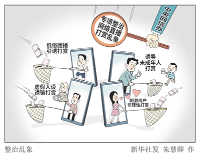 新华社北京10月28日电 记者28日从中央网信办获悉,为进一步加强网络直播打赏管理,中央网信办在全国范围内开展为期2个月的“清朗·整治网络直播打赏乱象”专项行动,聚焦娱乐性团播、私域直播等易滋生直播打赏乱象的重点领域,从严打击四方面突出问题,加强直播打赏营利行为规范,营造良好直播生态。四方面突出问题包括:低俗团播引诱打赏、虚假人设诱骗打赏、诱导未成年人打赏、刺激用户非理性打赏。其中,虚假人设诱骗打赏方面,重点整治营造“贫困户”“王妃”“精英海归”等虚假人设,冒充军人、教师、医生等身份,编排“家庭不幸”“暴力霸凌”等虚假剧情,或使用AI技术生成虚假内容,诱骗用户打赏等。诱导未成年人打赏方面,重点整治教唆未成年人盗用家长身份信息,躲避平台监管,进行打赏;明知用户为未成年人,仍不制止甚至诱导其打赏等。