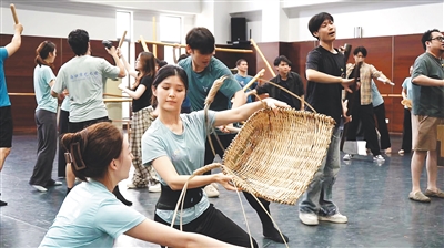 连日来,海南省歌舞剧院彩排厅里热度不减,演员们正昼夜不停打磨这部东坡大戏。他们手持铁锹、竹篮,肩扛竹杠,动作利落,生动还原出北宋年间海南乡亲为初到儋州的苏东坡父子搭建茅草屋的场景。