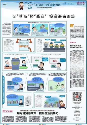 作为众多企业投资的“优选地”,海南有信心、有底气。企业看好海南的理由很多,比如,独特的政策优势、突出的区位优势,以及服务贴心、投资便利等等。无论是加速释放政策红利、加快打造贸易枢纽,还是不断提升政务服务水平、持续推出惠企便利举措,都反映出海南打造市场化、法治化、国际化一流营商环境的积极成效。这充分说明,好的营商环境对吸引企业投资至关重要。