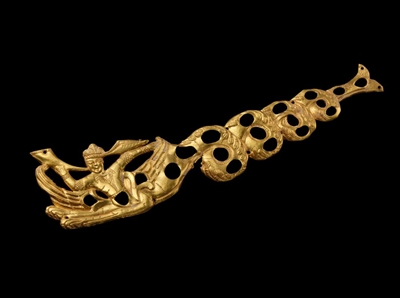 在公元7世纪初期,青藏高原上兴起了一个强盛的政权——吐蕃,它与中原的唐朝几乎同时出现。吐蕃利用丝绸之路,汇聚了来自中原、南亚、中亚及西亚的多元文化,如伊朗地区萨珊王朝(公元224年—公元651年)的艺术,形成了具有独特吐蕃特色的金器风格。