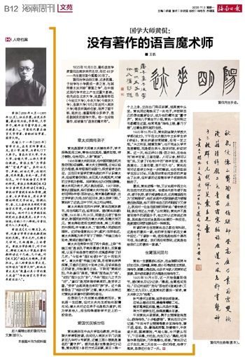 黄侃治学远绍汉唐,近承乾嘉,于经学与小学蔚成一家之言,与其师章太炎并称“章黄之学”,在中国近现代学术史上产生过重大影响。他先后在北京大学、武昌高等师范(今武汉大学)、中央大学(今南京大学)、金陵大学(1952年后并入南京大学)等多所高校任教,培养了程千帆、陆宗达、潘重规等众多弟子,是名副其实的国学大师。他一生没有著作,却被誉为“语言的魔术师”。