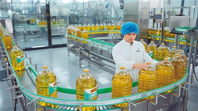 作为全国首家享受加工增值内销免关税政策的试点企业,海南澳斯卡国际粮油有限公司车间生产繁忙。海南日报全媒体记者 张茂 摄
