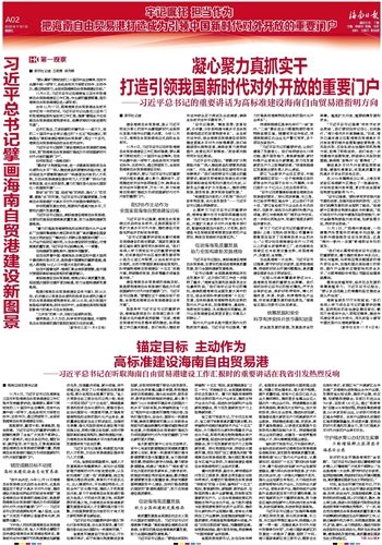 “党中央决定,今年12月18日海南自由贸易港正式启动全岛封关,这是我国坚定不移扩大高水平对外开放、推动建设开放型世界经济的标志性举措”“建设海南自由贸易港的战略目标,就是要把海南自由贸易港打造成为引领我国新时代对外开放的重要门户”……习近平总书记的话语掷地有声、催人奋进,让全省广大党员干部群众备感使命光荣、深感责任重大。