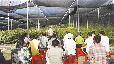 不一会儿,兰花基地里一下子聚集了近20名听众。大家排成三行坐下:“有什么好消息?快给我们讲讲。”