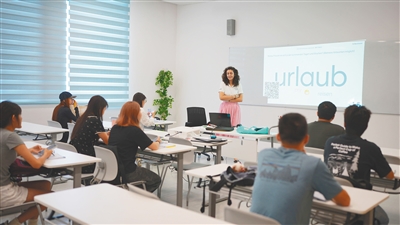 位于洋浦的海南比勒费尔德应用科学大学,学生在课堂上课。