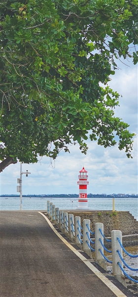 沿蚝墙走向渡口,远远可见新建的微型灯塔伫立在海天之间。红白相间的塔身宛若一支竖置在海角的朱笔,塔顶红色穹隆在晴空下流转着陶瓷般的光泽,既似渔姑斗笠,又似蓄势待发的火炬基座。这座不过数米高的建筑,以恰到好处的比例承载着导航与象征的双重使命——白日里它是摄影镜头中文艺范十足的视觉焦点,夜幕降临时则化作温暖的光语者,以柔和光束为晚归的扁舟标定归航的坐标。其基座与蚝墙形成材质对话:粗粝的贝壳见证着过往的渔耕记忆,光洁的塔身则昭示着文旅融合的新生。当潮水退去,灯塔与蚝墙在夕阳里投下交错的光影,仿佛时空在此达成和解:一边是渔民集体协作的物证,一边是乡村振兴的崭新坐标,共同勾勒出曲口村从“靠海吃海”到“护海而兴”的文明进阶。