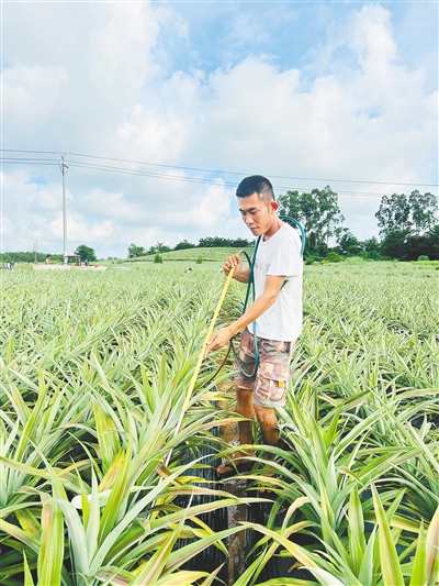 陈杰在凤梨地里施肥。高庆 摄
