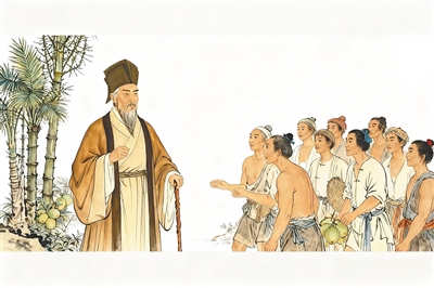 苏轼居儋州期间,与海南百姓融洽相处,他笔下出现了“黎子云兄弟”“吹葱叶的儿童”等众多平民形象。获赦北归时,他说自己是“儋耳人”,这次离开就像是出远门。