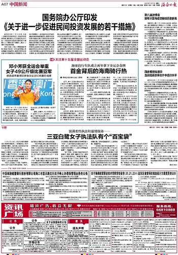 近日,第十五届全国运动会公路自行车赛在珠海结束。在女子个人计时赛中,首次参赛的海南队员张好夺得冠军。这是本届全运会上海南体育代表团的首金,也是海南建省以来获得的首枚全运会自行车项目金牌。