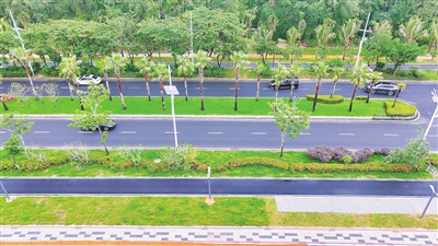 三亚海棠南北路提质改造工程近日完工,向市民游客开放。施工方供图