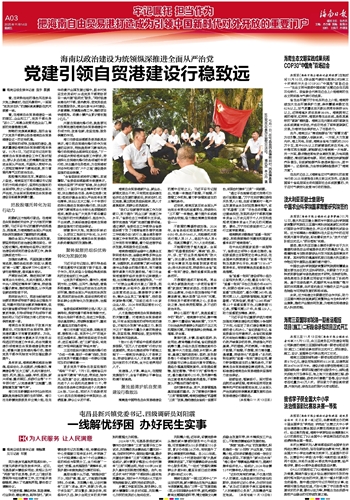 看,在海南自由贸易港建设一线的园区、企业和工厂,党员干部化身“店小二”,将惠企政策送进企业门,胸前的党员徽章熠熠生辉。