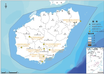 近岸海域水质和主要森林旅游区空气负离子水平示意图