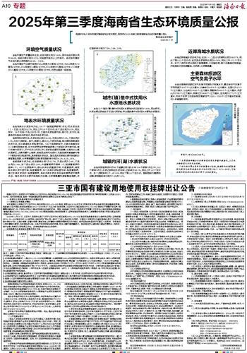 根据《中华人民共和国环境保护法》有关规定,现发布《2025年第三季度海南省生态环境质量公报》。海南省生态环境厅