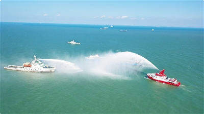 此次演练是国内首次针对新能源车辆在平板驳船海上运输过程中突发火灾开展的专项应急演练。