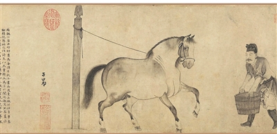 赵孟頫绘《饮马图》。