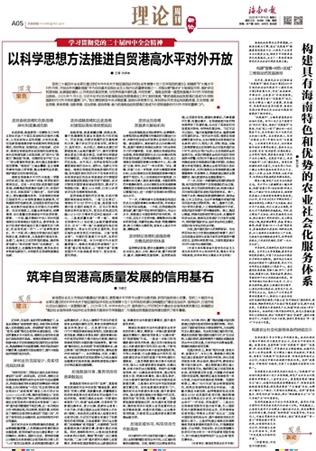 坚持科技赋能与开放合作深度联动。数字化升级与国际化布局是体系现代化的核心方向。科技赋能上,从海棠区数字平台到鳄鱼小镇的技术攻关,再到南繁种业的科研支撑,均体现“向种图强”的政策导向;开放合作上,对接自贸港封关运作要求,通过“绿色通道”“单一窗口”等服务提升贸易效率,加强国际热区农业合作,同时健全生物安全防控体系,实现“开放发展与风险防范并重”。