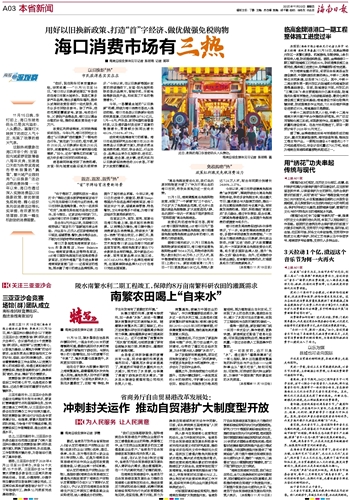“海南自贸港封关在即,我们将立足岗位,全力以赴确保封关运作平稳有序,同时着眼封关运作后发展需求,积极推动海南自贸港扩大制度型开放,不断提升贸易自由化便利化水平。”省商务厅自由贸易港改革发展处相关负责人表示。(本报海口11月19日讯)