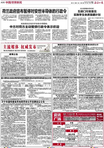 发言人说,中方对荷方主动暂停行政令表示欢迎,认为这是向妥善解决问题的正确方向迈出的第一步,但距离解决全球半导体产供链动荡和混乱的根源“撤销行政令”还有差距。同时,在荷经济部推动下的企业法庭剥夺闻泰科技对荷兰安世控制权的错误裁决,仍是阻碍问题解决的关键所在,希望荷方继续展现与中方真诚合作的意愿,真正提出建设性解决问题的方案。双方同意应取消行政干预,支持和推动企业通过协商依法解决内部纠纷,既保护投资者的合法权益,也为恢复全球半导体产供链安全与稳定创造更有利的条件。