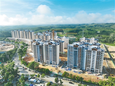 机械轰鸣,保亭黎族苗族自治县保城镇,海垦·安悦阳光项目现场,工人埋头苦干、各项施工作业有条不紊地开展,按下建设“快进键”;