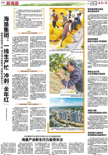 “四季度冲刺号角持续吹响,各部门、各企业多措并举聚动力,强化一线生产,筑牢发展根基。”海垦集团相关负责人表示,该集团将持续发力,以垦地融合、“一场一品”等重点工作为抓手,进一步添举措、扩范围、加力度,从深化改革、解决实际问题等入手,进一步强健产业链条,以点带链,培育新的经济增长点。