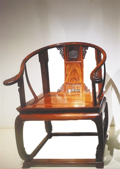 邹鸿用少有的黄花梨阴沉木制作的明式宫廷座椅。海南日报全媒体记者 张期望 摄