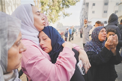 11月20日,在加沙地带北部加沙城,人们参加空袭遇难者的葬礼。