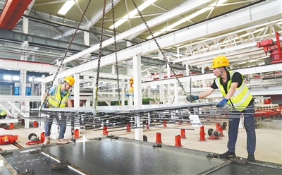 近日,在临高金牌港开发区的中铁建设建筑发展海南绿色建筑产业园,生产车间一派繁忙,工人们抢时间、赶进度,加快装配式建筑构件生产,全力以赴冲刺第四季度生产任务,确保高质高效完成全年目标。