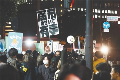 数百名日本民众二十一日晚在位于东京的首相官邸前集会,抗议日本首相高市早苗近日在国会发表的涉台错误言论,要求其撤回相关表态并作出解释和道歉。新华社发