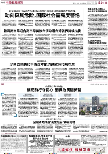 毛宁表示,今年是中国人民抗日战争胜利80周年,也是台湾光复80周年。中方决不允许日本右翼势力开历史倒车,决不允许外部势力染指中国台湾地区,决不允许日本军国主义死灰复燃。中方有决心、有能力捍卫国家领土主权。