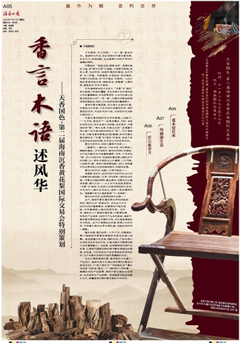 为充分展现海南沉香、黄花梨的文化魅力、产业活力,海南日报今日推出特别策划《香言木语述风华》,以“匠心琢岁月”“风物缀生活”“嘉木促往来”为脉络,通过一个个鲜活的人物故事,一幅幅生动的产业图景,展现沉香花梨的文化根脉、生活美学与产业前景。带领读者共赴这场香木之约,读懂海南沉香和黄花梨的千年风华。