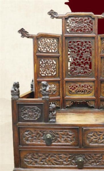 黄花梨三屏式透雕花草纹镜台。(资料图)