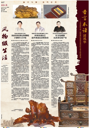南国有嘉木,沉香与花梨。作为海南的特色资源,沉香与花梨不仅承载着岁月的厚重,更在现代工艺的雕琢下,以多元形态融入日常生活——雅致的现代工艺品、温润的日用器物与富有巧思的特色文创产品等。它们在岁月长河中历久弥新,以物载道,熠熠生辉。