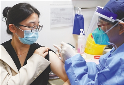 一名女士在复旦大学附属妇产科医院接种九价HPV疫苗。新华社发