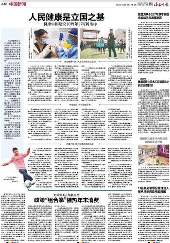 “十五五”规划建议明确“加快建设健康中国”,将广泛凝聚全社会维护人民生命健康力量,为确保基本实现社会主义现代化取得决定性进展注入澎湃动力。