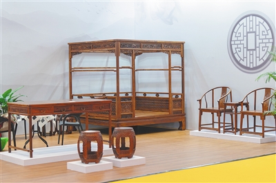 天香国色展展出的黄花梨产品。