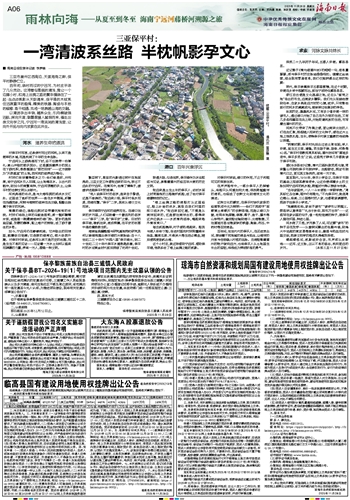 ■ 海南日报全媒体记者 李梦楠三亚市崖州区西南边,天涯海角之畔,保平村静静伫立。