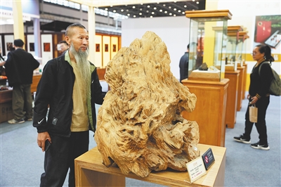 ③ 天香国色展展出的沉香展品吸引观众驻足观看。
